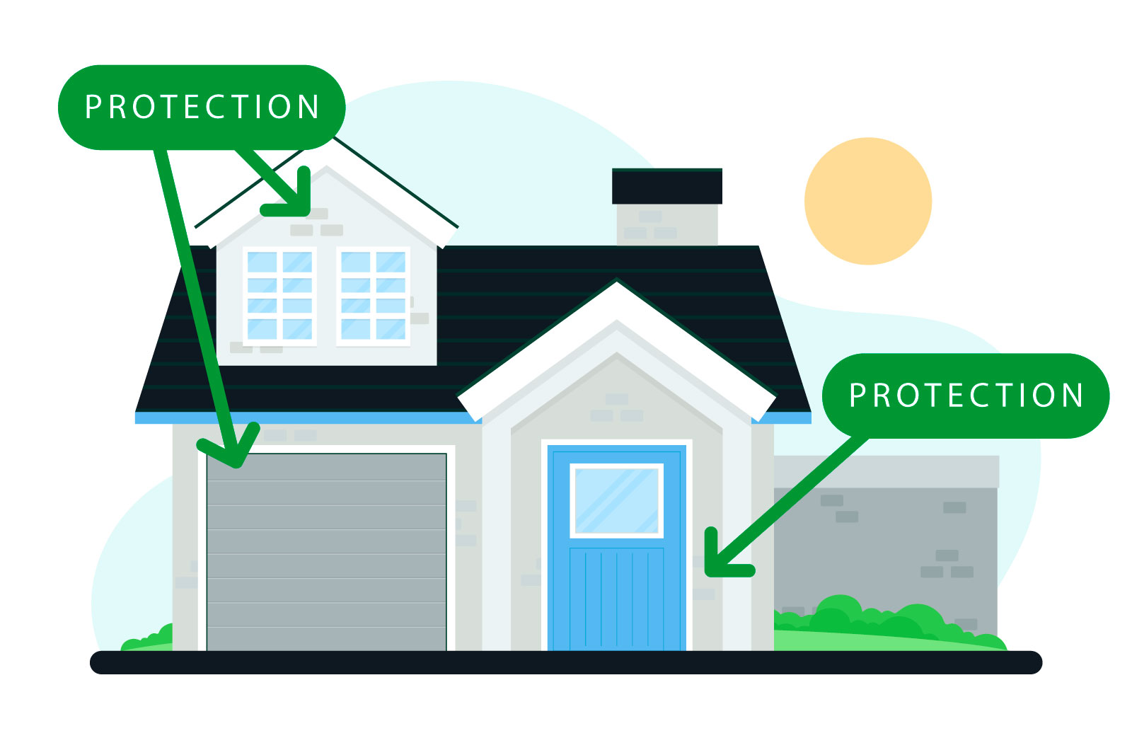 Visual diagram showing how APIRA wraps, shields, and protects all critical zones of a house, windows, shutters, balconies, garage, generator.